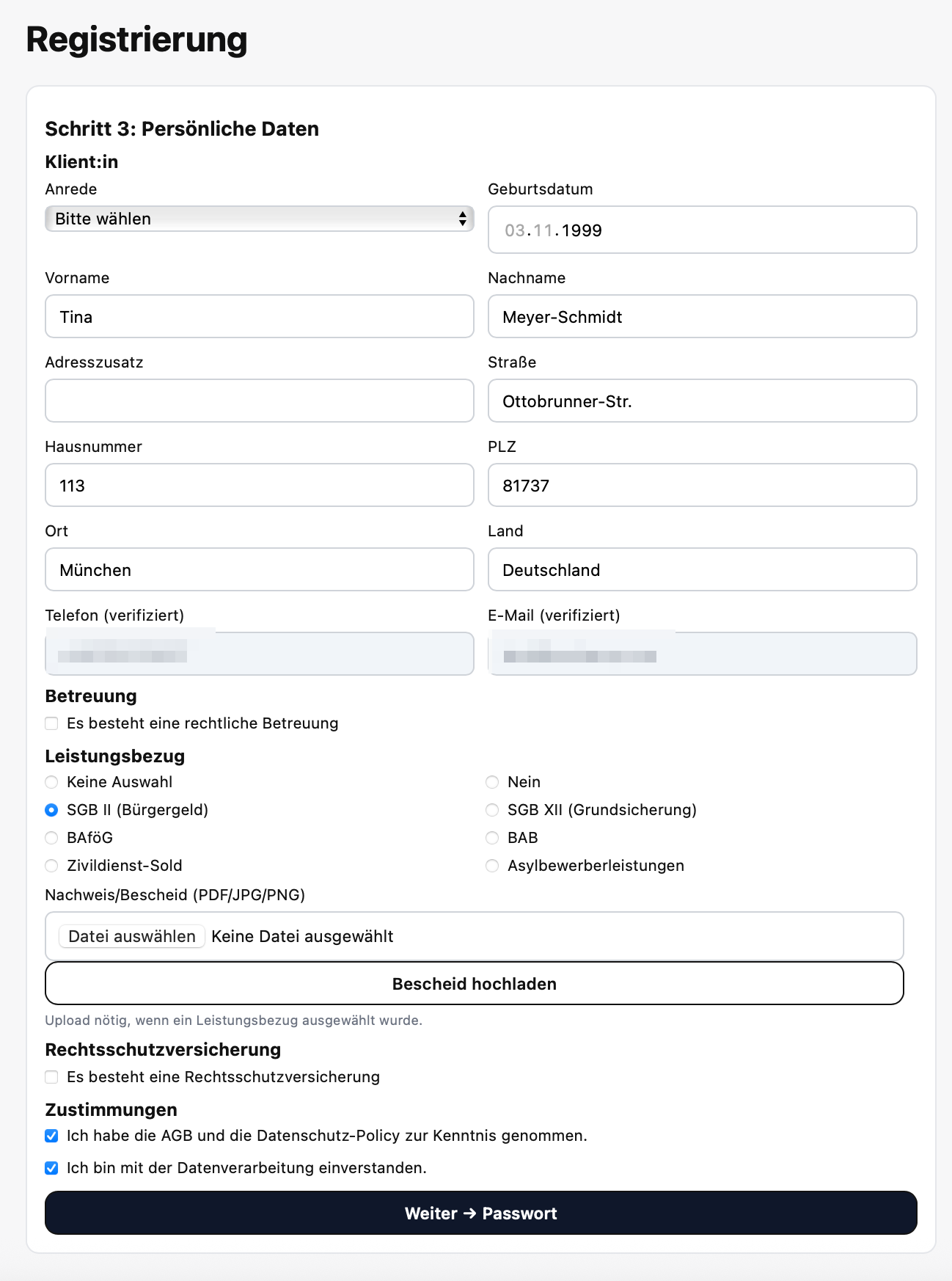 - Keine andere zumutbare Möglichkeit: Du hast keine Rechtsschutzversicherung, die das Problem abdeckt, und es gibt keine andere kostenlose Beratungsmöglichkeit (z. B. Sozialverbände, Gewerkschaften).