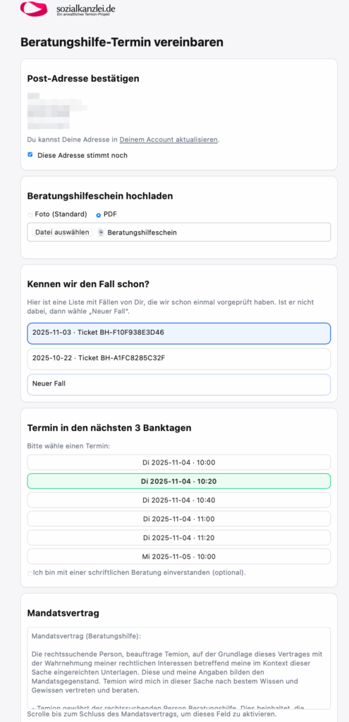 Jetzt hast Du einen Beratungshilfeschein erhalten? Dann vereinbare gleich einen Termin: